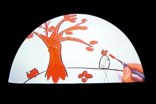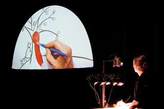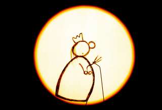 Mit ihrer Mischung aus Puppentheater, Projektionen und Malerei locken Eva und Paul Schmidtchen im Zusammenspiel von Schattenfigur, sich aufblätternden Seiten und gehorsamen Untertanen-Darsteller:innen die eigentliche Geschichte aus dem Bilderbuch erst heraus.