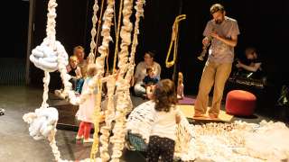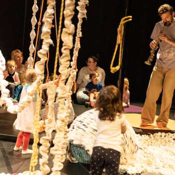 «Knoten» bietet die Möglichkeit, diese ursprüngliche Verbindung mittels verschiedener kinetischer und klanglicher Installationen wiederzuentdecken. Das ganz junge Publikum kann in Hängematten, Schaukeln und Wiegen gemeinsam mit den drei Künstler:innen in diese Welt eintauchen. Verschiedene partizipative Installationen laden zum Verweilen, Staunen und gemeinsamen Entdecken einer faszinierenden Welt aus Knoten und Zöpfen ein.