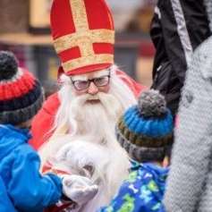 Der Samichlaus kommt und verteilt Samichlaussäckli an die Kinder.