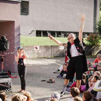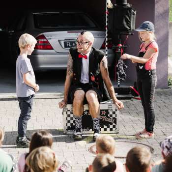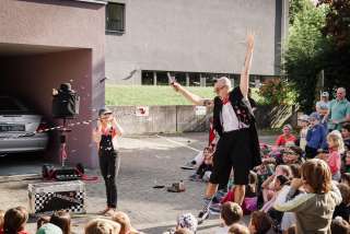 Neben Kinderateliers gibt es humorvolles und überraschendes Zirkustheater von der Compagnie Tarkabarka. Ganz ohne Worte begeistern sie mit ausdrucksstarkem Theater, feiner, Clownerie, flotter Akrobatik und poetischen Momenten. Wer kennt ihn nicht: Magic Zauberfuzzi Albi? Er ist besonders, besonders liebenswert, besonders zauberhaft und besonders tollpatschig und zaubert eine schräge Mischung aus Zauberei & Comedy auf den TAK-Vorplatz. Und auch eine fantastische Reise in einem Wohnwagen können die Besucher:innen in «Avion Papier» erleben.
