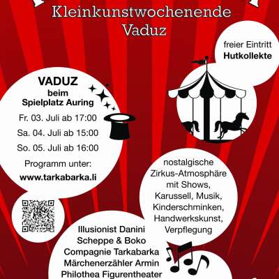 Unter dem Motto "Kultur im Quartier für alle", bietet das Tarkabarka Kleinkunstwochenende ein 3-tägiges familienfreundliches Fest mit zirzensischem Flair. In schmucker Zirkusatmosphäre dreht ein handbetriebenes Karussell von Roger`s Kreisreisen zu Live-Musik seine Runden, ein weisser Dom lädt zu Vorstellungen von Philothea Figurentheater, Illusionist und Mentalist Danini verblüfft das Publikum in einem Zirkuswagen, Zirkustheater und Clownerie ohne Worte von der Compagnie Tarkabarka und Scheppe & Boko begeistern Gross und Klein, Märchenerzähler Armin entführt Menschen jeglichen Alters in Fantasiewelten und die Tanzgruppe Urban Dynasty erfrischt mit spektakulären Tanzeinlagen. Am Samstag Abend spielt die Band Kolotoč und bringt mit rhythmischem Folk-Fusion die Menschen zum tanzen und Herz-Feuer schliesst den Abend mit einer poetischen Seifenblasen-Feuershow ab.