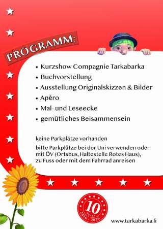 Zum 10-jährigen Jubiläum des Vereins Tarkabarka hat die liechtensteiner Illustratorin Eliane Schädler ein kunterbuntes Wimmelbuch über die Arbeit und das Wirken des Vereins illustriert. Auf 10 Doppelseiten gibt es eine Menge zu entdecken.