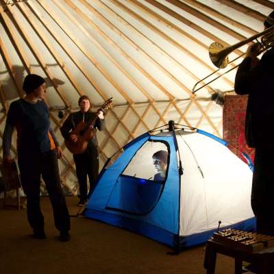Dies ist die Geschichte zweier Jugendlicher aus Aleppo. Vor dem Hintergrund ihrer Reise durch die Türkei, Griechenland und Mazedonien erzählen sie Geschichten über Menschen, Dinge und Orte, und über ihren Alltag auf der Flucht. Das Publikum ist in die behagliche Enge einer mongolischen Jurte eingeladen, in der mit Schauspiel, Live-Musik und Schattentheater von den Gefahren des Unterwegsseins, von der Suche nach Zufluchtsorten und vom Ankommen erzählt wird.