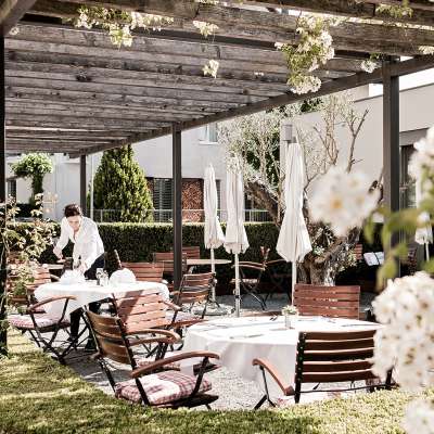 In den Sommermonaten lädt der stilvolle Gastgarten zum Verweilen und Geniessen im Freien ein. Das Restaurant bietet zudem ausreichend Platz für Feiern jeder Art – von der Geburtstagsrunde über Taufen bis hin zur Hochzeit.