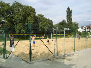 Durch den ganzen Freizeit- und Erholungspark führen schöne, beleuchtete Spazierwege. Die Beachvolleyball Anlage mit Tribüne hat drei Plätze. Parkplätze sind vorhanden.