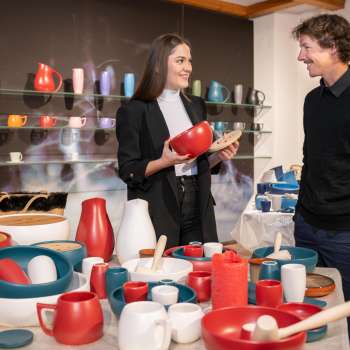 Beim Betreten des Keramikcafés begegnen einem nicht die üblichen Kaffeehaustische, sondern man steht mitten im Verkaufsladen für die hausgemachte Keramik. Kunden und Gäste kommen ins Gespräch und das wird bei einem Kaffee fortgesetzt. Man begegnet sich und diskutiert, man spricht über das Tagesgeschehen oder das Wetter. Ein typischer Ort der Begegnung.