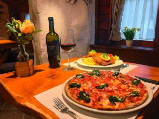 Das Restaurant Gitzihöll in Malbun fällt durch seine Höhlenoptik auf und sorgt für eine gemütliche Atmosphäre. Auf der Speisekarte stehen unter anderem Pizzas, Pasta und Schnitzel.