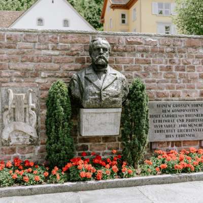Anlässlich des 100. Geburtstages von Josef Gabriel Rheinberger wurde 1939 ein Wettbewerb um die Erstellung eines Denkmales für den Komponisten durchgeführt. Als Siegesprojekt wurde ein Projekt von Franz Marcel Fischer ausgewählt, das schliesslich 1940 vor dem Rheinbergerhaus aufgestellt wurde.