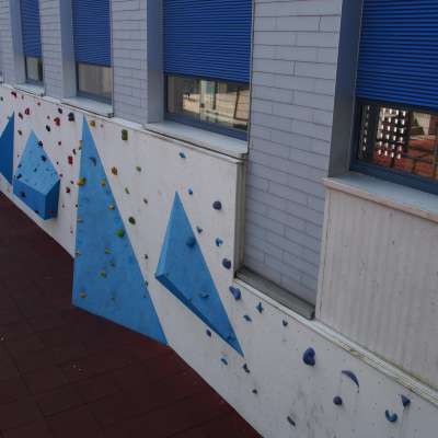 Die Schule Äule besitzt neben einer Einzelturnhalle auch einen roten Aussenplatz im Innenhof der Schule sowie eine Boulder-Wand.