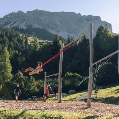 Der Spielpark in Malbun ist für Kinder eine ideale Vorbereitung für erste Wanderversuche im alpinen Gelände. Auf der Kletter- und Balancieranlage können sie die ersten sicheren Tritte und die Bewegungskoordination üben. Der weiche Hackschnitzelboden verzeiht auch kleine Ausrutscher. Stationen wie die Wasser- und Matschstrecke laden zum freien Spielen mit Bachläufen, Staubecken etc. im Schatten der Bäume ein.