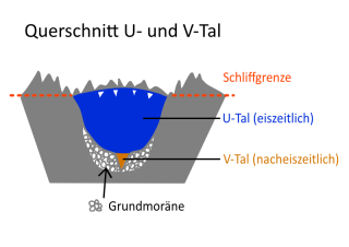 Ins eiszeitliche U-Tal wird nacheiszeitlich ein V-Tal eingesägt