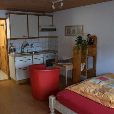 Ausgestattet mit einem bequemen Doppelbett, einem Tisch, Schrank, Lesesessel sowie Satelliten-TV und Internet über LAN (kein WLAN), vereint das Studio Komfort mit Einfachheit. Die integrierte Küchenzeile verfügt über alle notwendigen Utensilien zur Selbstverpflegung, in der Nasszelle befinden sich Dusche und eine Waschmaschine.