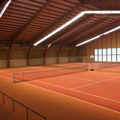 Die Tennishalle befindet sich direkt neben dem Freibad und der Minigolfanlage in Vaduz.