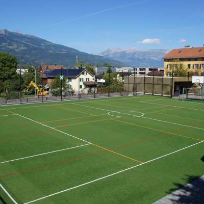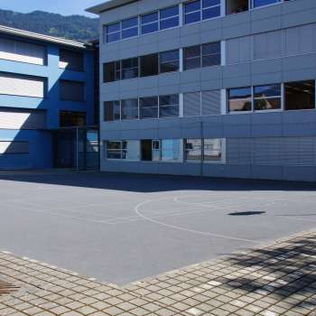 Die Schule besitzt neben einer grossen 2-Fach Turnhalle einen Kunstrasen Aussenplatz.