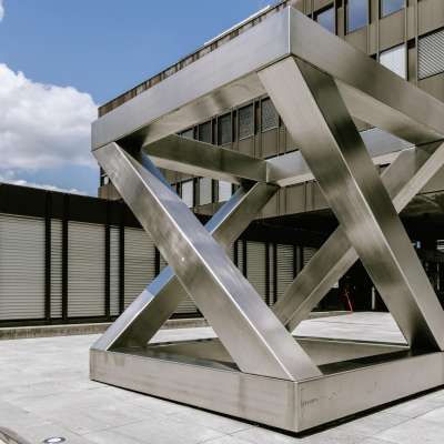Diese Buchstabengebilde können bis zu fünf Meter hoch werden, trotzdem umschreiben sie immer noch den Kubus. Beim Betrachten des Z-Würfels stellt man fest, dass der Schaft des Buchstabens, der den oberen und unteren Querbalken verbindet, "falsch" verläuft: Statt von rechts oben nach links unten, verbindet er links oben mit rechts unten. Das Z ist also spiegelverkehrt gezeichnet. Blickt man aber durch die Skulptur auf die gegenüberliegende Seite des Kubus, so erkennt man den Buchstaben Z in korrekter Schreibweise. Die Vorderseite des Würfels zeigt so die Rückseite des Buchstabens, der Buchstabe ist auf die Würfelinnenseite geschrieben, und erst, wenn man in Zentrum des Würfels steht, erhält das Zeichen einen Sinn.